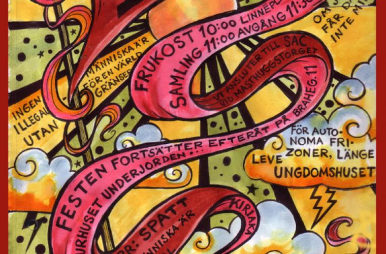 På kvällen blir det självklart fest så vila dagen innan. Festen kommer att vara i gamlestaden på Kulturhuset Underjorden. Klockan fem serveras det mat och första bandet börjar klockan sex. Arrangörer är Spatt, Ingen människa är Illegal, Yo go Grrl, Kiriaka och Ofog!
