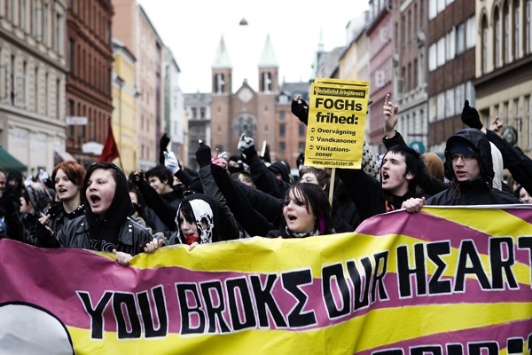 Den första mars var det två år sedan Ungdomshuset på Jagtvej 69 i Köpenhamn stormades av polis och tusentals ungdomar och vuxna gick ut på gatorna i protest mot att huset skulle rivas. Vid sammanstötningar med kravallutrustad polis sattes bilar i brand och stora delar av stadsdelen Nørrebro stod under belägring. Många artister engagerade sig för ungdomarna och solidaritetsaktioner över hela världen anordnades. I Köpenhamn fortsatte fantasifulla demonstrationer och aktioner ända tills ett nytt ungdomshus uppfördes i april förra året. Men kampen har inte upphört.