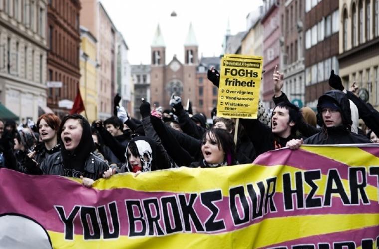 På tvåårsdagen av polisens stormning av Ungdomshuset hade Rörelsen för flera fristäder kallat till demonstration. Demonstranterna samlades på Gammel torv för att tåga tillsammans till Jagtvej 69, som nu är en öde rivningstomt. En kommuniké lästes upp: