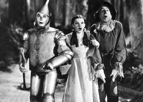 En cyklon dyker upp och för Dorothy och bondgården till den magiska världen Oz (den amerikanska drömmen, som kunde ha varit verklighet). De landar hos den onda häxan Östan (bankirerna på Wall street). Dorothy dödar häxan och blir av en god häxa belönad med ett par magiska silverskor (Populistpartiets silverlösning på penningfrågan).Dorothy vill sedan åka hem igen, men vet inte hur. Med sig på färden har hon Fågelskrämman som söker efter en hjärna (bönderna), Plåtman som söker efter ett hjärta (fabriksarbetarna) och Lejonet som är på jakt efter mod (Populistpartiets William Jennings Bryan). Gruppen får till sist träffa Trollkarlen från Oz, som säger att de först måste besegra den onda häxan Västan (Rockefeller). Detta lyckas Dorothy med genom att hälla en spann vatten över henne.