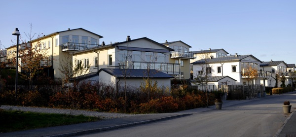 Arkitekten hade kommit på att om man stoppar in stora glaspartier i gipskistorna, så kan man dels höja priserna och dels kan grannen och alla andra se in. Se alla saker hemmen fyllts med och förbluffas över räntornas låga läge, amorteringarnas litenhet, och dväljas i avund över inte bara grannens bil, utan även över insidan av hemmen och deras statusbemängda artefakter. Genom att låta förbipasserande titta in på hela härligheten, slipper man som husägare och lycklig låntagare att bjuda in någon för att se vad man köpt för fint. Det spar både arbete och pengar, för mat det är dyrt.