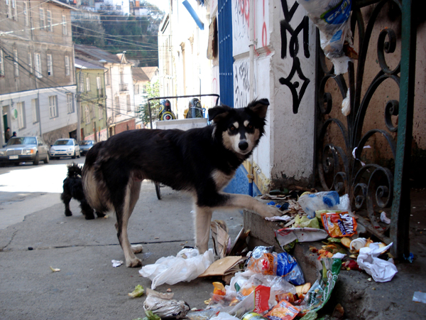 Att hemlösa Valparaisobor plockar upp en brödbit från marken som egentligen adresserats till en gatuhund går inte ens att tänka på. När blev människovärdet placerat på sekundär plats efter en tuffsig byracka?
