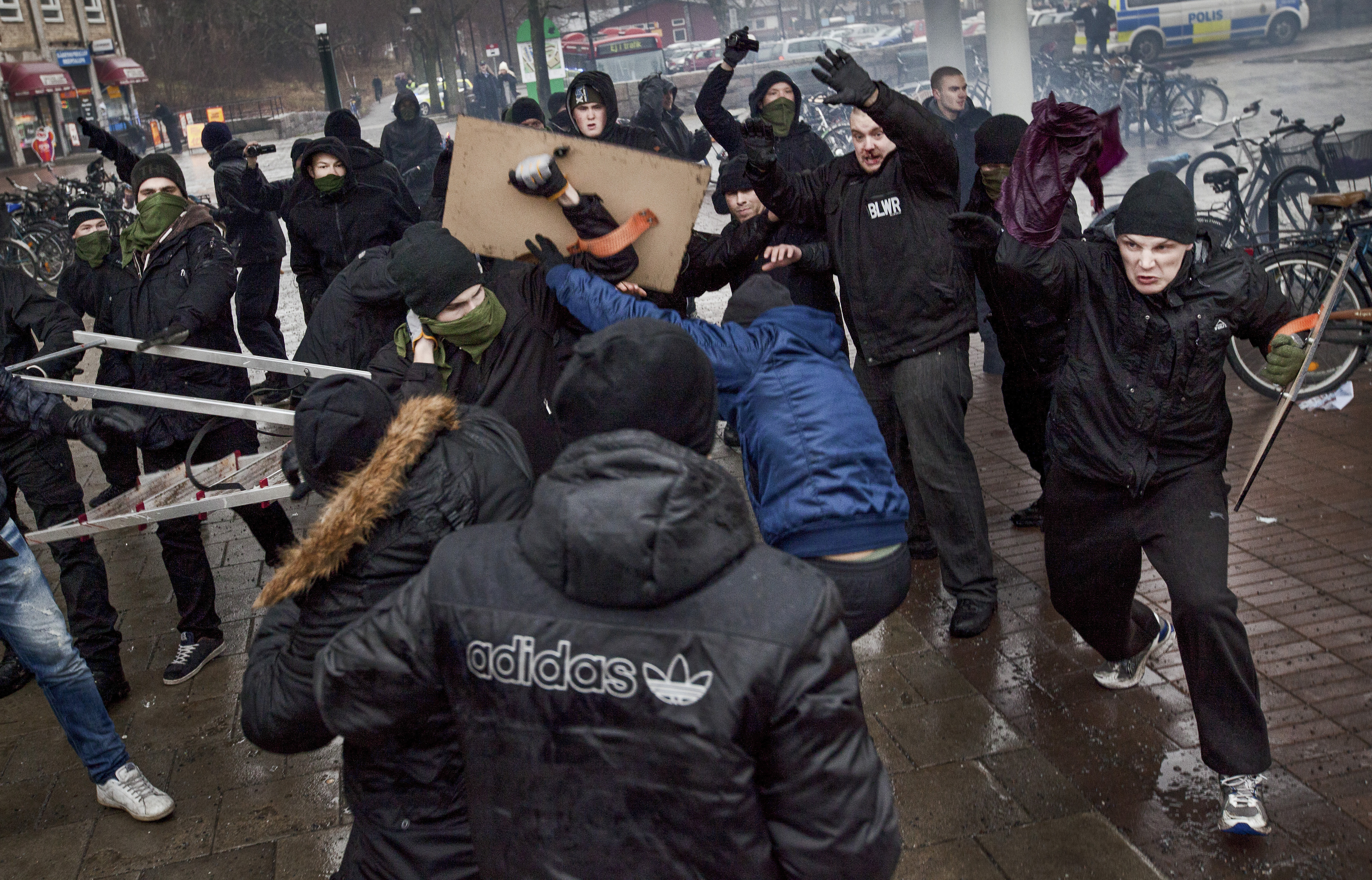 Nästan samtidigt som glasflaskor och knallskott landade bland anti-rasister med barnvagnar i Kärrtorp i södra Stockholm landade en utredning om ”våldsbejakande extremism” på demokratiminister Birgitta Ohlssons bord. På regeringens uppdrag torgför den idén att nazisternas ibland dödliga våld mot breda samhällsgrupper och jihadisters bombningar av civila kan jämställas med vissa vänsterautonoma gruppers skadegörelse och våld mot nazister eller polismakten.