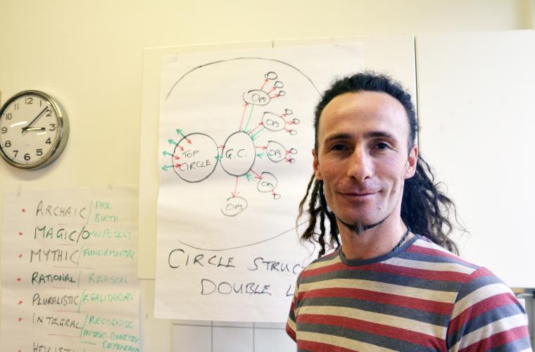 Under några veckor har James Priest gästat Sverige för att hålla kurser i sociokrati. Dels på Ängsbacka i Värmland och dels på Glokala folkhögskolan i Malmö. Nu hoppas han att filosofin ska få genomslag i Skandinavien.