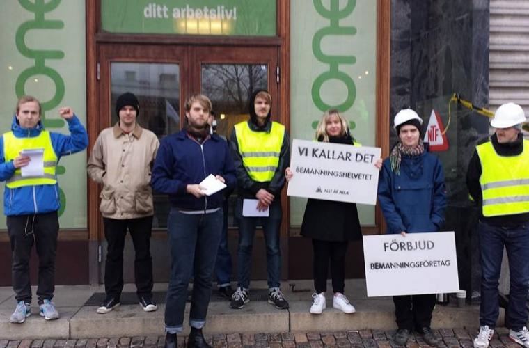 Fackförbundet Unionen har aktier för nästan 43 miljoner kronor i tre olika bemanningsföretag, avslöjade tidningen Arbetaren nyligen. Därför gjorde förbundet Allt åt alla Göteborg en aktion mot Unionen på torsdagseftermiddagen, en symbolisk avspärrning av fackets kontor.