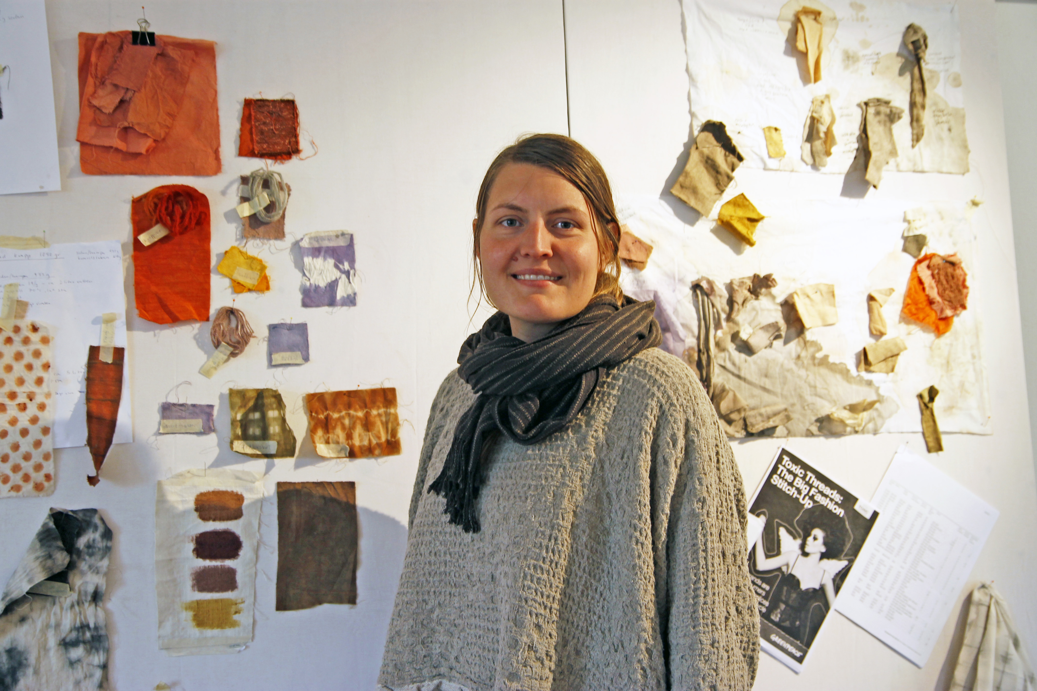 När hon gjorde sitt examensarbete besökte hon organisationer i Indien som arbetar med naturlig färgning. Hon ville se hur de gjorde och vilka effekter deras metoder hade på naturen och på arbets-miljön.