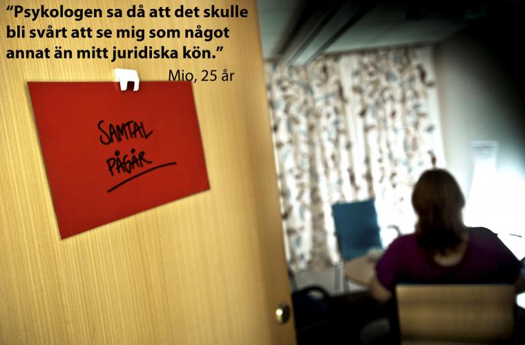 Psykologen sa då att det skulle den väl försöka med, men att jag måste förstå att det blir svårt att se mig som något annat än mitt juridiska kön.