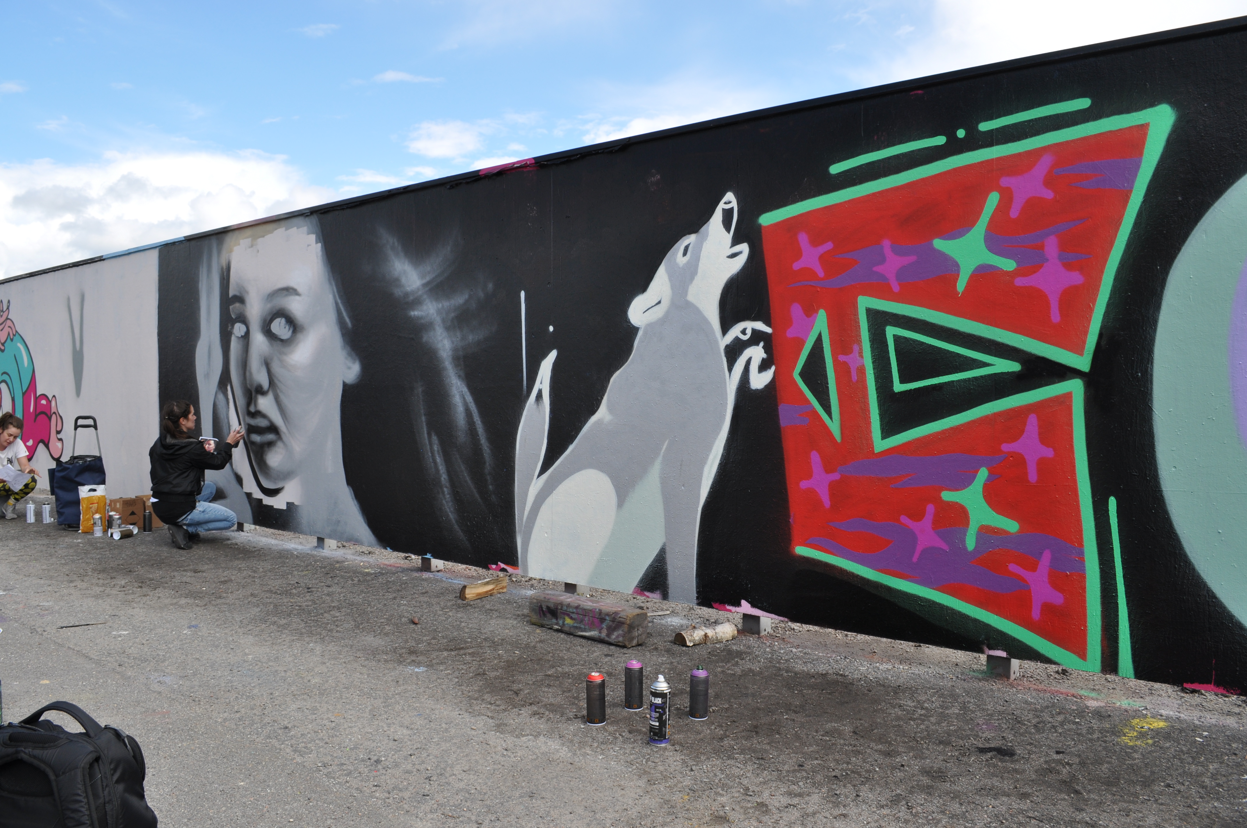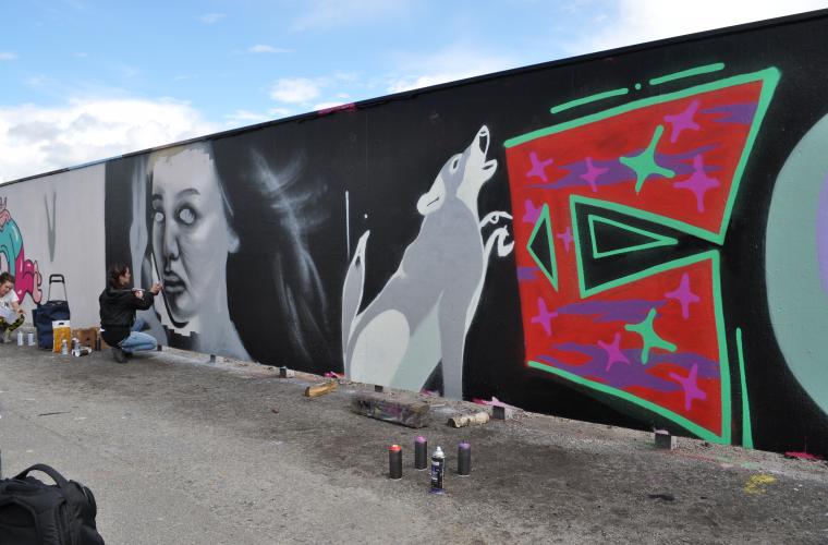 När jag lämnar Hangaren fortsätter målare att droppa in. Ett hundratal tjejer kommer till Subtopiaväggen under dagen och efteråt är Emma Simu från Forza Femme nöjd.