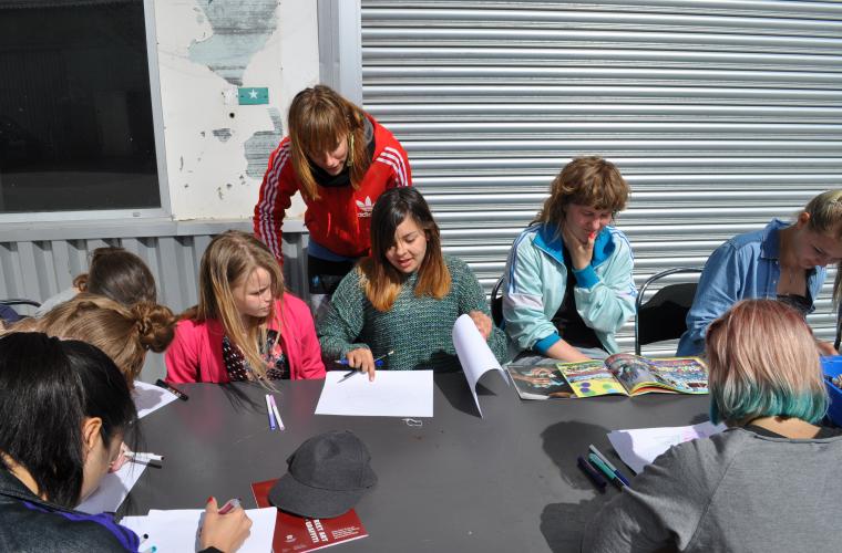 Lina Eriksson är inbjuden för att måla och hålla i en workshop tillsammans med Anya Blom (Bless). Ett tiotal tjejer deltar. Efter inledande handledning om hur man ska hantera sprejburkar får de prova på att göra skisser till målningar.