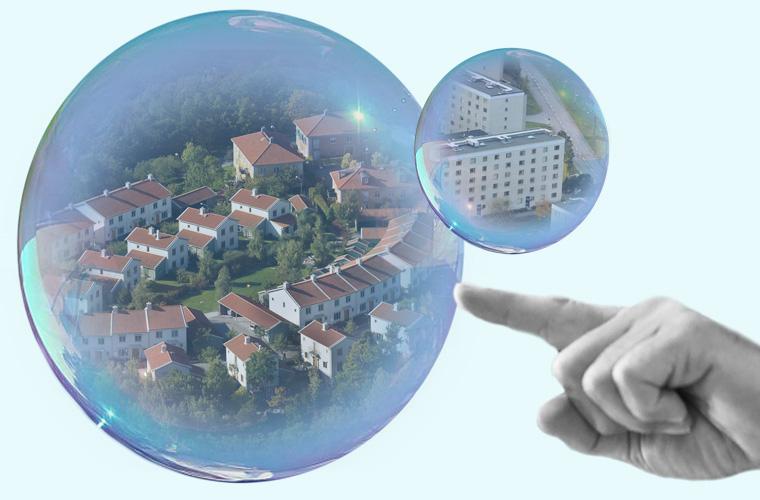 Till skillnad från till exempel bubblan i it-aktier vid 00-talets början handlas hus sällan till det egentliga värdet – i USA var det bara i några enstaka kommuner där priserna föll till mindre än hälften efter kraschen 2007. Men eftersom det handlar om en stor andel av befolkningen som är inblandade kan en bostadsbubbla ändå få väldigt stora konsekvenser.