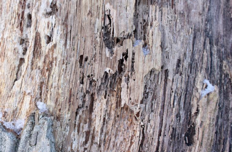 Nu, på senvintern, står de med sina karaktäristiska krokiga grenar i siluett mot himlen. Några är på väg att dö, man kan se barken falla av. Det är ett skäl till att insekterna trivs här.