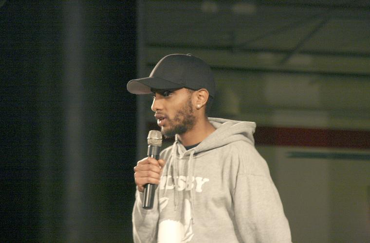 Amer Sarsour förklarar hur spoken word är en konstform som hela tiden samspelar med publiken, ”det är nästan som en dialog fast en monolog”.