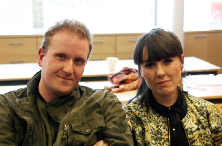 Nazira sitter nonchalant på ett bord och slänger ut frågan. Tobbe går med händerna i byxfickorna och blänger med en blick som skyms av kepsen.