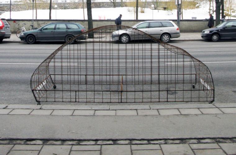 För att peka på och åtgärda denna ojämlikhet byggde Johanna Nenander en struktur av armeringsjärn. Precis som en bil kan denna sedan ”parkeras” på en parkeringsplats.