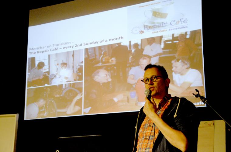 Repareringskaféer och mötesplatser för att köpa och sälja lokalt producerad mat är succéer för omställningsrörelsen i Belgien.