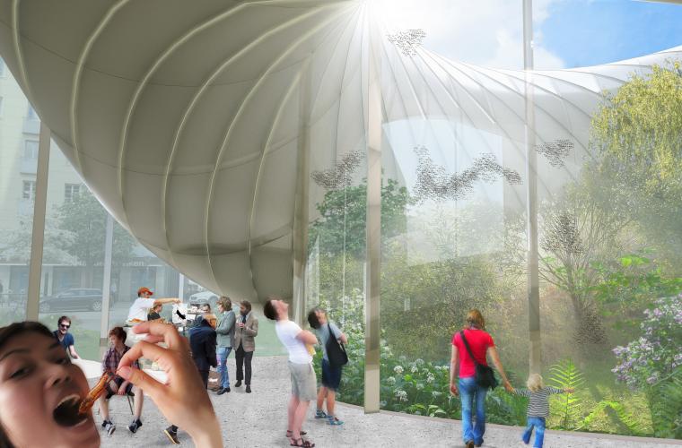 En mer kontroversiell idé står arkitekterna Miguel Lara och Petter Jacobson för. De vill hellre bygga rum för utsatta människor än exklusiva bostäder. Utanför Arkdes har man placerat deras prototyp till Gapahuk, ett slags uppgraderat vindskjul med odlingslådor på en inbyggd gård. Originalet har placerats i Hornstull. Syftet är att väcka debatt om och bryta gentrifieringen, menar de bägge arkitekterna på Vi Arkitektur.