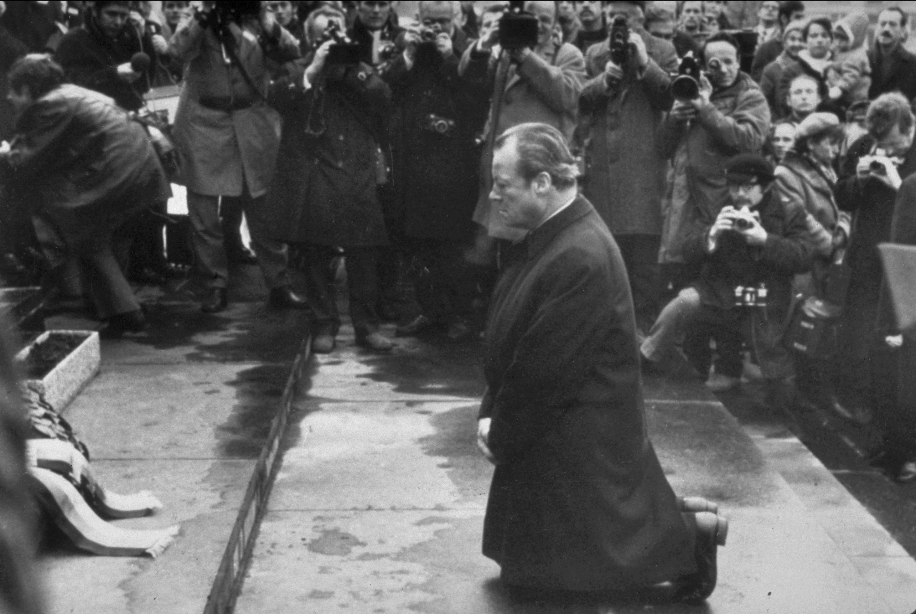 • Willy Brandt besöker det tidigare judiska ghettot i Warszawa 1970.