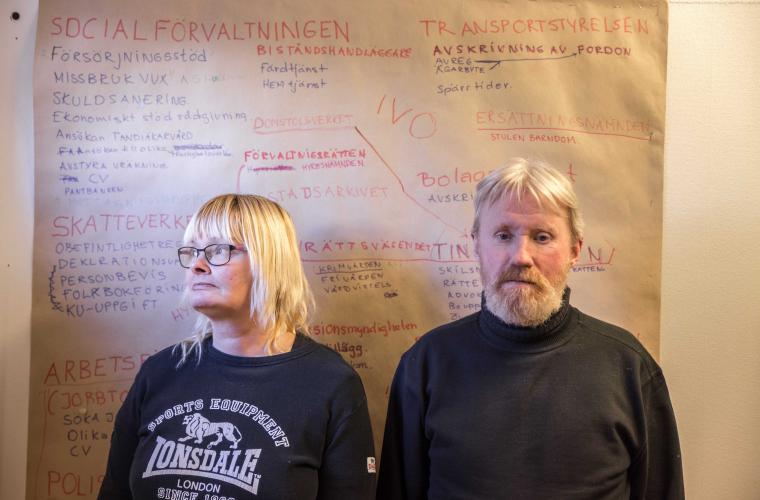 - Vi såg en massa systemfel som vi stöter på dagligen när vi guidar, säger Åke. Hur svårt det är att ta sig tillbaks. När man ser den här kartan, det är ungefär vad människor i utanförskap ser, allt det här jobbiga. Blankettmobberi som vi kallar det. Varje myndighet har ju sitt antal blanketter som ska fyllas i och handläggarna verkar finnas till bara för att rätta blanketterna. Vi har ett talesätt, att på 1970- och 80-talen jagade socialtjänsten missbrukarna, i dag jagar missbrukarna socialtjänsten. Då fanns de där ute, då hade de personkännedom om sina klienter.