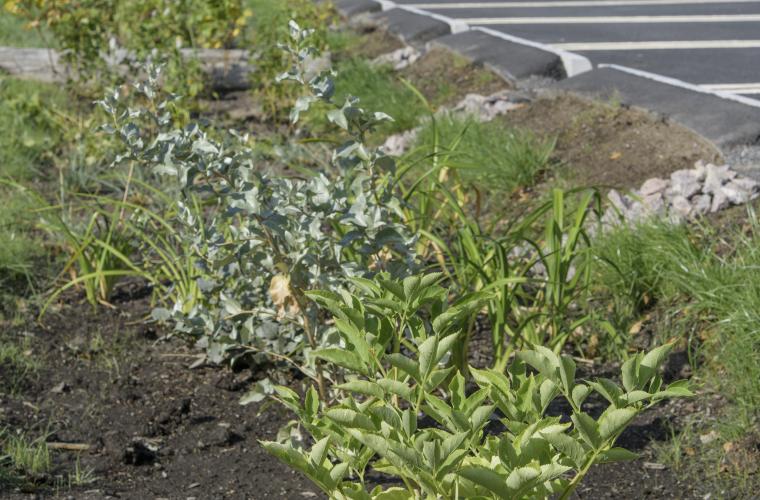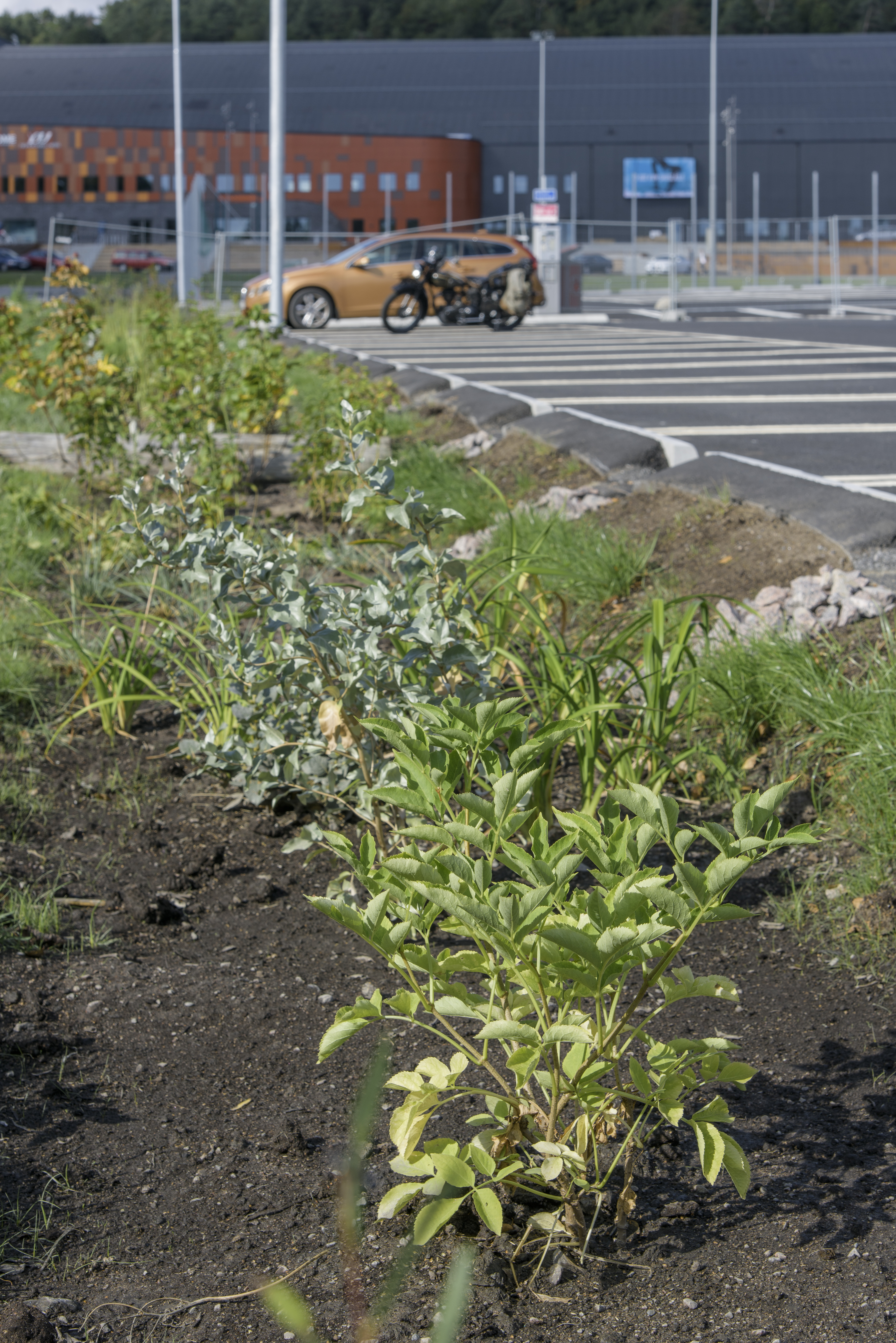 Runt parkeringsplatsen intill Kvibergs sportarena i Göteborg prunkar snart en ny rabatt. Det är en 700 kvadratmeter stor plantering som egentligen är ett slags reningsverk. Vattnet rinner igenom växtbädden där föroreningar fastnar och vattnet rinner vidare ner till en dräneringsledning.