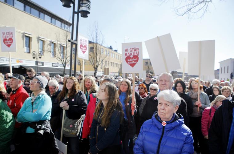 Minst 20 000 människor demonstrerade i söndags i Härnösand mot landstingspolitikernas planer att flytta specialistsjukvård från Sollefteå och Härnösand till de större orterna Sundsvall och Örnsköldsvik. Manifestationen beskrivs som den största i Ådalens historia.