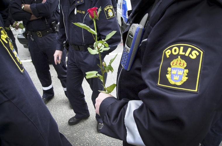 • Söndag 17 juni 2001. Socialdemokraterna delar ut rosor till poliserna som har tjänstgjort under EU-toppmötet.