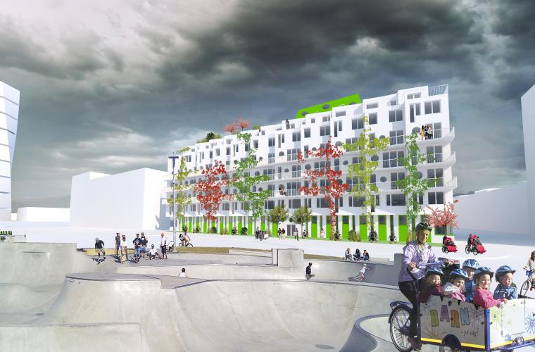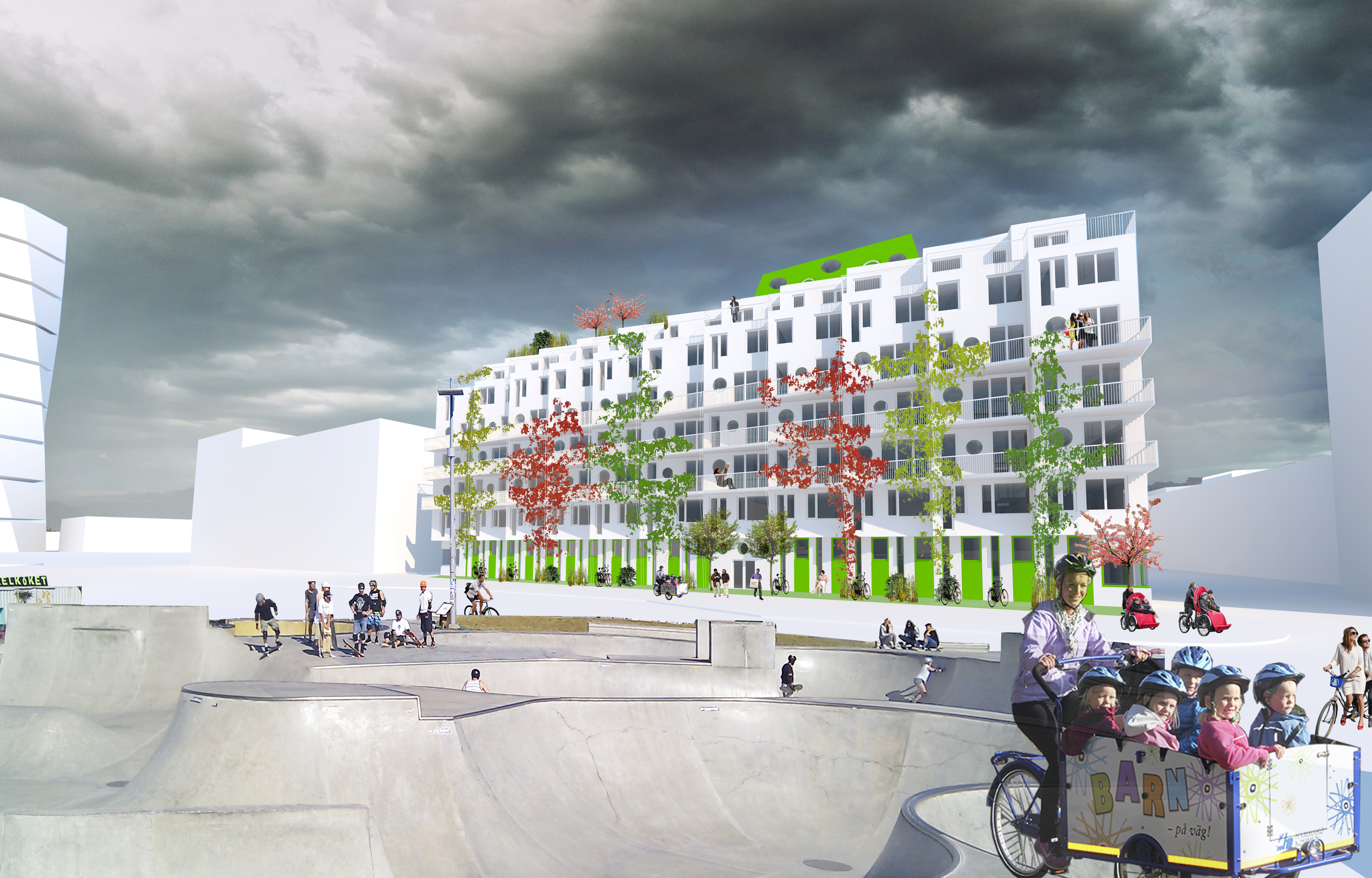 I Västra hamnen i Malmö pågår bygget av Sveriges första bostadshus och hotell som är helt anpassat för cykelburna familjer.
