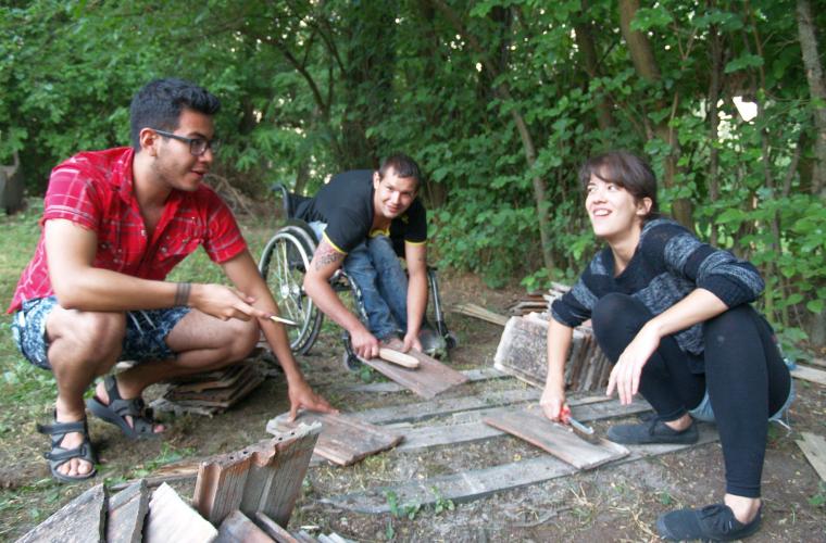 Ungdomsutbytet Transition in action som finansieras av EU:s Erasmusprogram. I två veckor ägnar sig ungdomar från flera länder i Europa åt omställningsarbete i ett lokalsamhälle. 2016 byggde de en rullstolsvänlig komposttoalett och en lerugn vid ett utbildningscenter i den ungerska byn Kunbábony.– Omställningsrörelsen består ofta främst av personer i medelåldern. Det här är ett sätt att göra lokalt engagemang sexigt för personer mellan 18 och 25, säger Tracey Wheatley.
