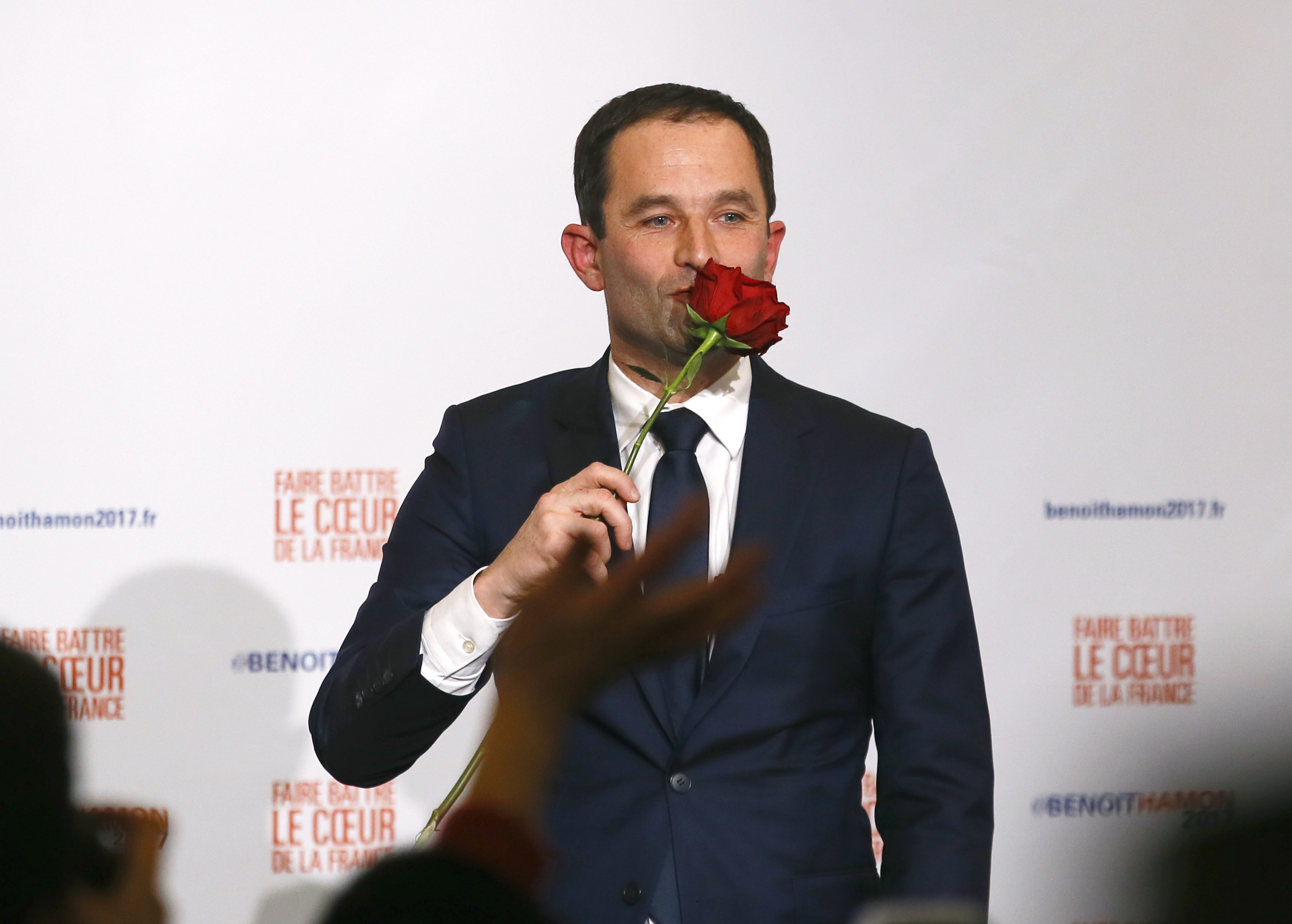 – Min övertygelse är att när vi nu ställs inför en privilegierad, konservativ höger och en destruktiv extremhöger, har vårt land behov av en vänster som ser världen som den är, inte som den var, och som erbjuder en eftersträvansvärd framtid, sa Benoît Hamon i sitt tacktal efter segern i vänsterns primärval.
