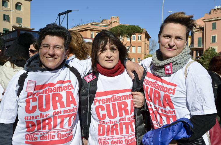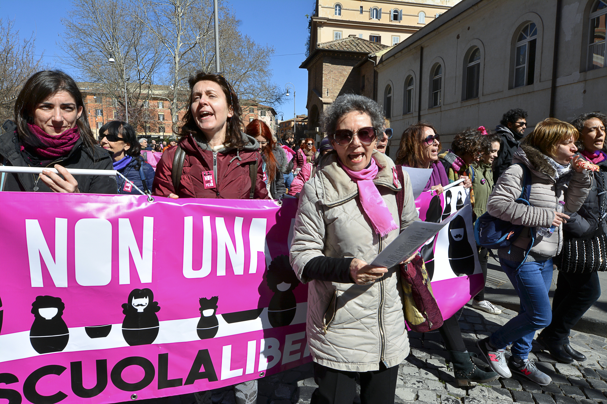 Italienska medier rapporterar att frånvaron från kvinnodominerade arbetsplatser såsom dagis, sjukhus och skolor var hög framför allt i huvudstaden. Men det har även anordnats manifestationer bland annat i Milano, Florens och Turin. I Rom når den sin höjdpunkt med en procession som avgår från Colosseum.