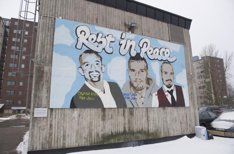 Konstverket var ett sätt för några av ortens unga att sörja tre vänner som ryckts bort i förtid. En blev skjuten av polis. I pannan. En mördades i en trappuppgång. En avled i en mc-olycka.