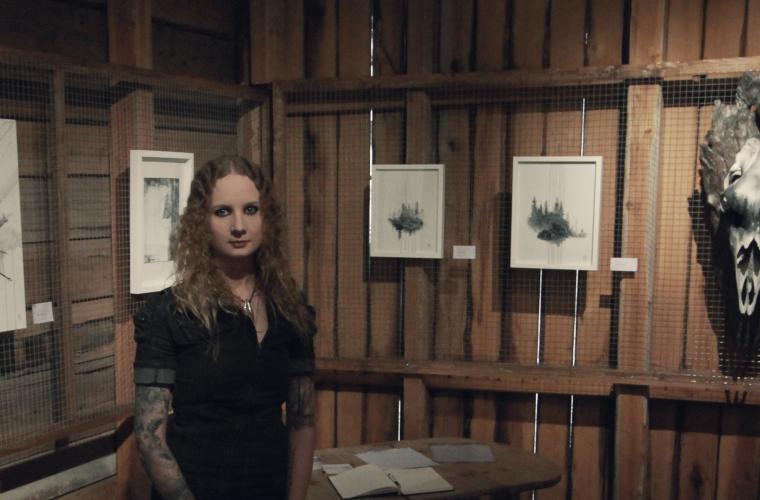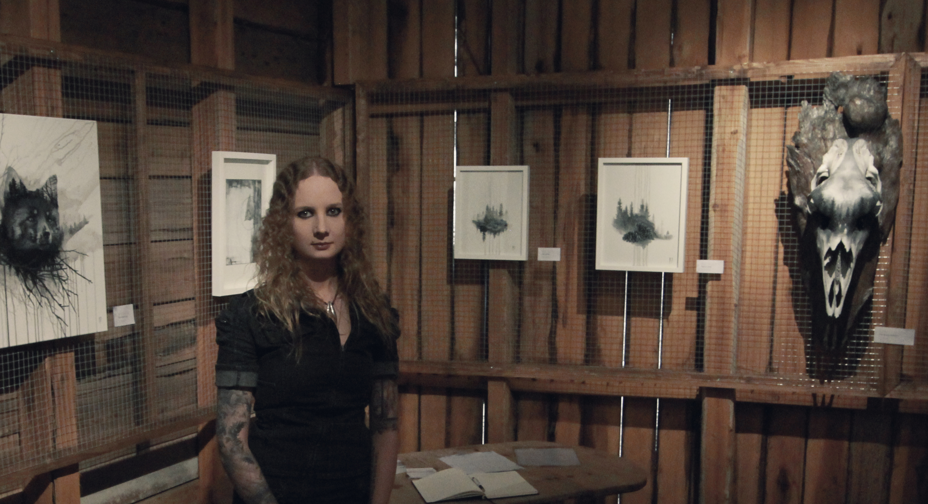 Konstnären och tatueraren Rebecka Jonasson hittar bokstavligen inspirationen utanför dörren. Hon bor i Storhäggsjö några mil utanför Umeå, ett område med fritidshus och en grusväg ner mot Storhäggsjön. I övrigt är det skog. Där går hon med de två hundarna för att stressa ned, men också samla idéer till sina målningar och tatueringar.