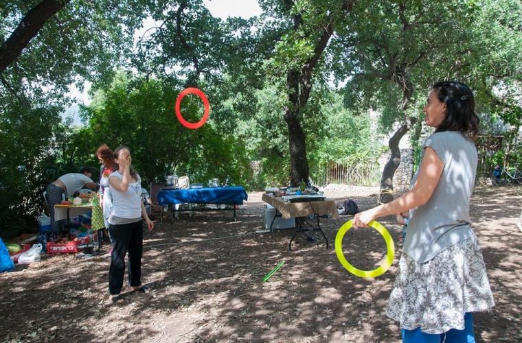 Därför fokuserar Israels omställningsrörelse mer på lokal mat, ekonomi och identitet. En av grupperna har startat en återbruksstation som de kallar för en ”skattgård”. Kommunen låter dem använda en gammal idrottsplats där de ställt en tom fraktcontainer. Boende i området uppmanas att lämna byggmaterial och liknande där, exempelvis handfat och dörrar som blir över vid rivningen av hus. Den som renoverar kan sedan komma dit och ta vad den behöver.