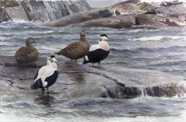 – Det beror lite på vad jag gör, om jag målar tittar jag med tubkikaren och så ser jag något som berör mig, ett uttryck, och då börjar jag skissa och känna in, så det går inte att säga att det är något speciellt. Men ofta är det ljuset i kombination med ställningen som har något inneboende uttryck som man blir berörd av. Man känner för det. Det kan vara två färgtoner eller ett ansiktsuttryck hos fågeln.