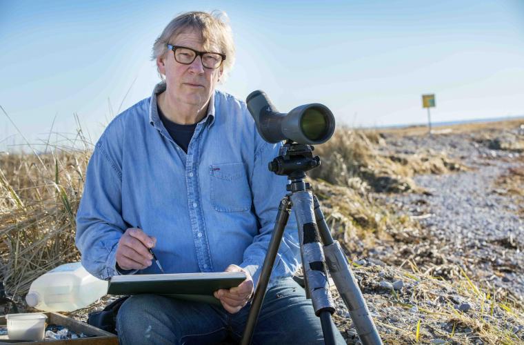 – Jag har nästan alltid skissboken med mig. Som konstnär arbetar man med blicken och seendet, det är ens viktigaste instrument. När man målar av en fågel tvingar man sig att titta på alla detaljer. Om man inte tecknar utan bara tittar blir det ofta att man inte kommer ihåg allting. Det är lite som när man skrev ner glosor i skolan.