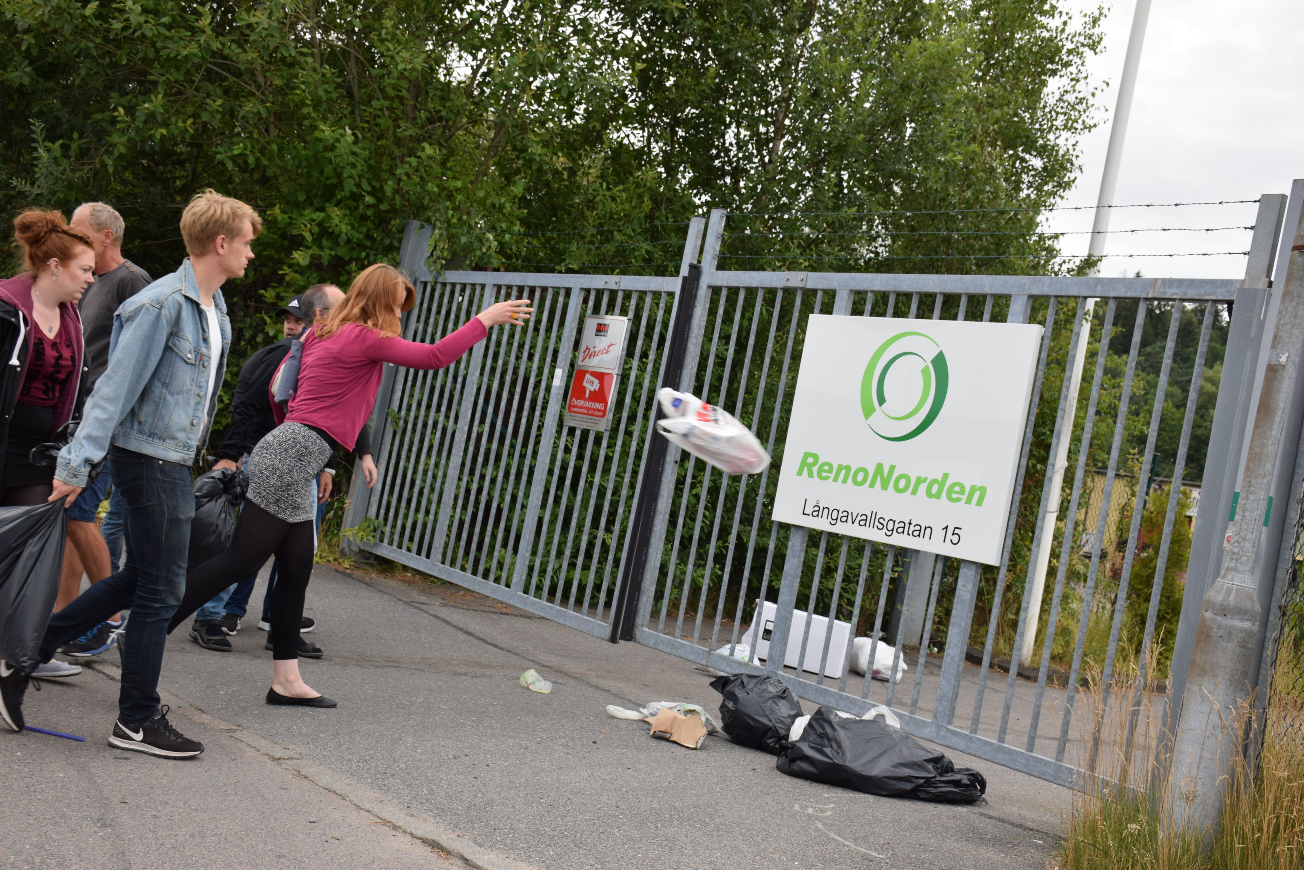 På tisdagskvällen samlades ett dussintal personer utanför Renonordens kontor i Gunnilse i nordöstrsa Göteborg. Alla som kom på aktionen hade uppmanats att ta med sig egna sopor för att dumpa.