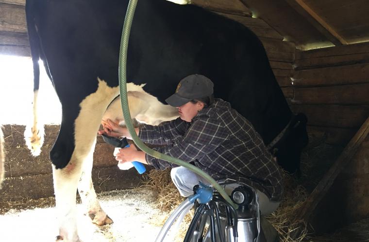 – Det är mycket jobb hela dagen men tre kor är ändå som rena semestern, säger Matilda Larson.