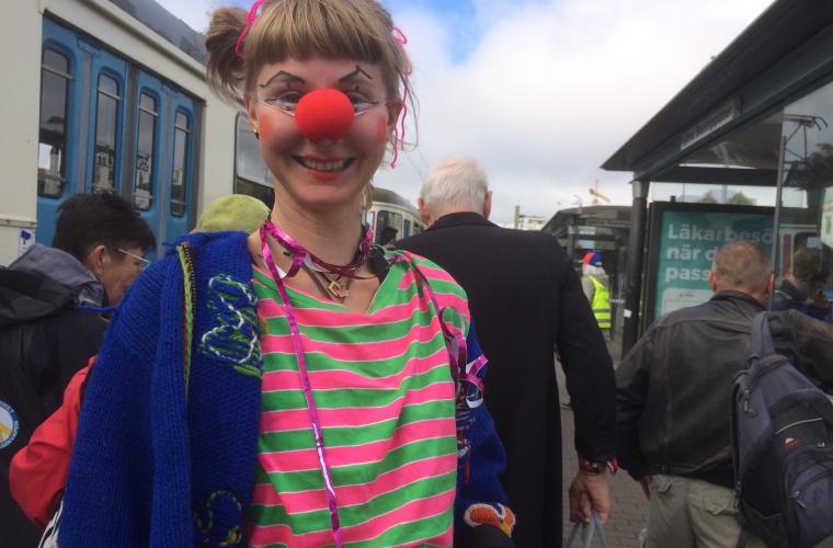 – Just rollen som clown har möjlighet att skapa helt andra möjligheter att problematisera och ifrågasätta men utan konfrontation, menar Elin Bothén Nyström. En clown kommer undan med helt andra saker och vår erfarenhet av polis och militär är att vi verkar avväpnande på en potentiellt spänd situation.