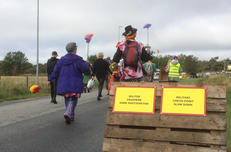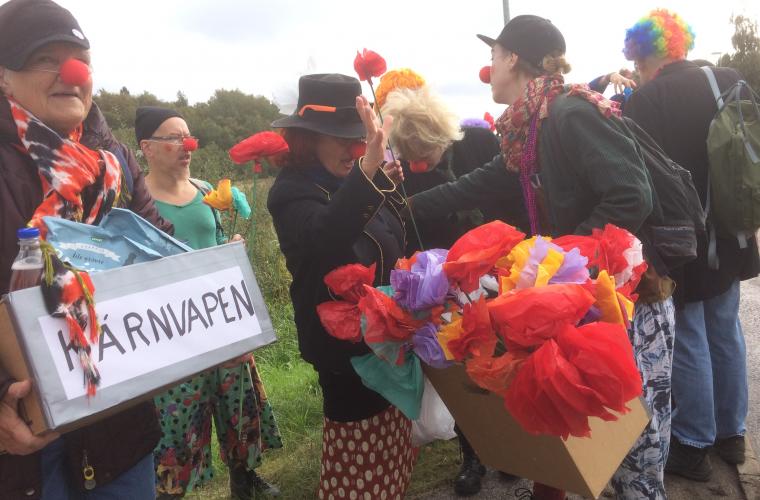 På måndagsförmiddagen samlades Clowner för fred utanför Säve depå för att försöka få en liten annan ingång till militärerna och övningarna.