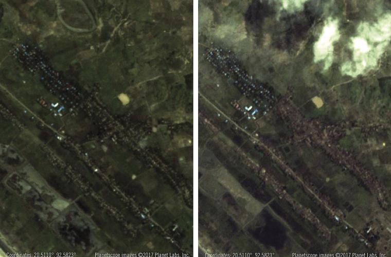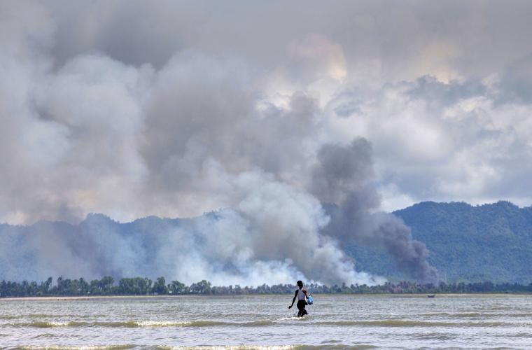 Amnesty International har tittat på satellit-bilder, bilder från mobil-kameror och intervjuat flyktingar i Bangladesh. De har har samlat bevis för att militären bränner ner byar där personer från folkgruppen rohingya bor. De jämför militärens sätt att arbeta med ”brända jordens taktik”. Över 80 byar har bränts ner och mer än 370 000 människor har flytt därifrån.