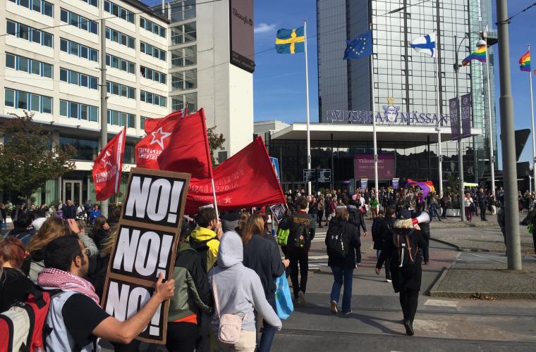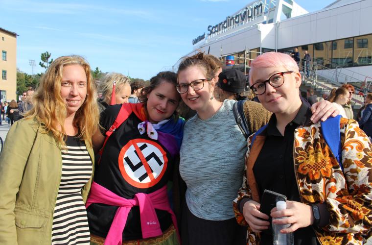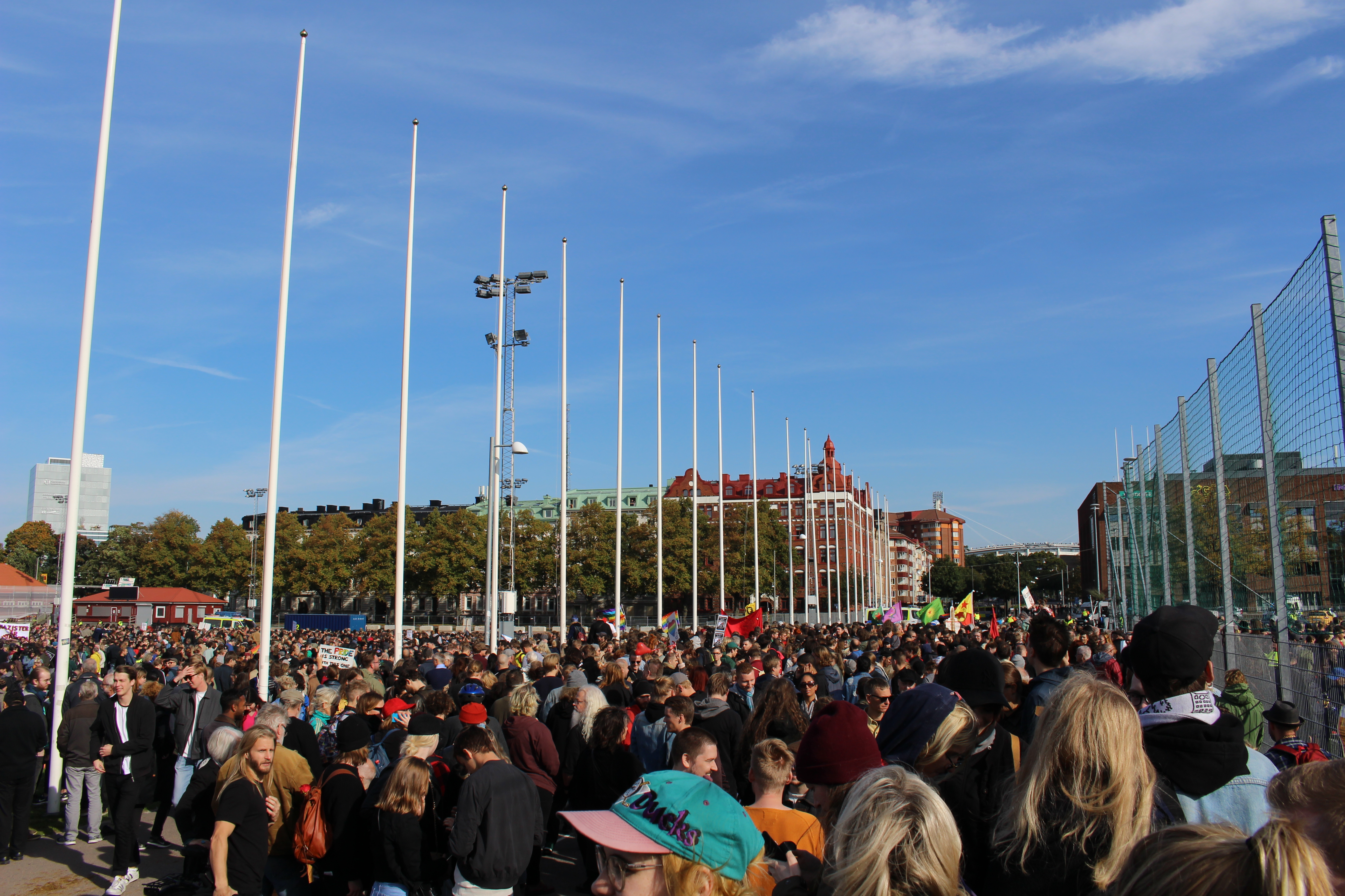 Stämningen inför lördagens annonserade nazistdemonstration i samband med Bokmässan har präglats av såväl en viss oro som av en stor beslutsamhet att visa hur många fler som enas under antirasismens fana. Ett flertal initiativ med motdemonstrationer har vuxit fram med Heden som absolut största samlingsplats, och redan vid halv elva på lördagsförmiddagen börjar folksamlingen växa.
