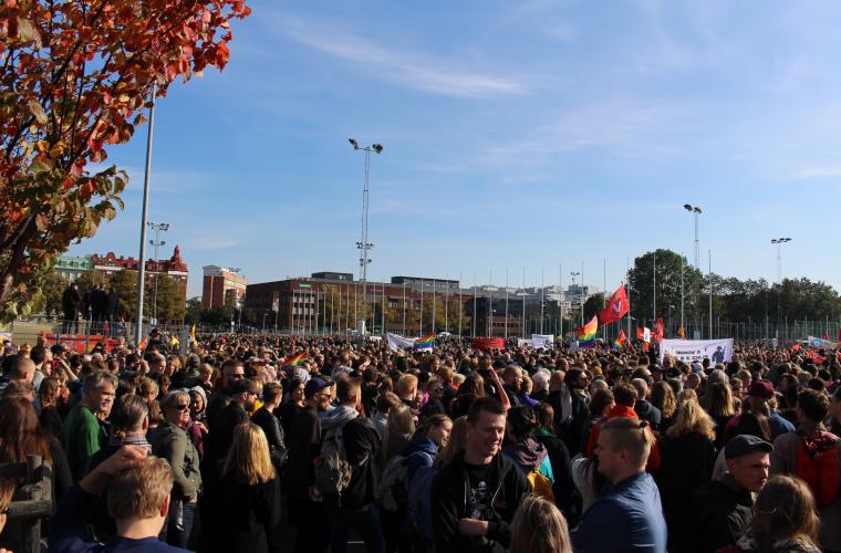 – Vi kan konstatera att oron som har uttryckts i media om motdemonstrationerna har visat sig vara överdriven, det har varit lugnt i det stora hela. Vi känner att det har varit en väldigt trevlig dag med många positiva människor som har känt glädje i att samlas mot det här.