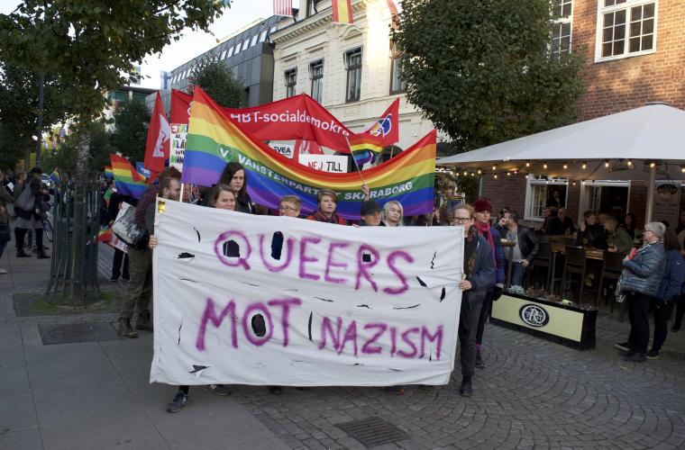 För tredje året i rad arrangerades Pride i västsvenska Skövde. Över 4 000 personer deltog i lördagens festivaltåg där nazistdemonstrationen i Göteborg fick stort fokus.