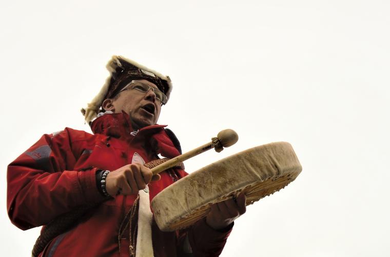 Ursprungsfolkens mobilisering mot industrin är en symbolisk annullering av den koloniala ordningen. När båten närmar sig sin destination och kapten MacKay sänker farten, står hövdingen Ernest Alfred, klädd i traditionella regalier, högst upp på däck och trummar. Robert Mountain, Art Dick och andra lyfter armarna och instämmer i sången. Stämningen är både festlig och beslutsam.