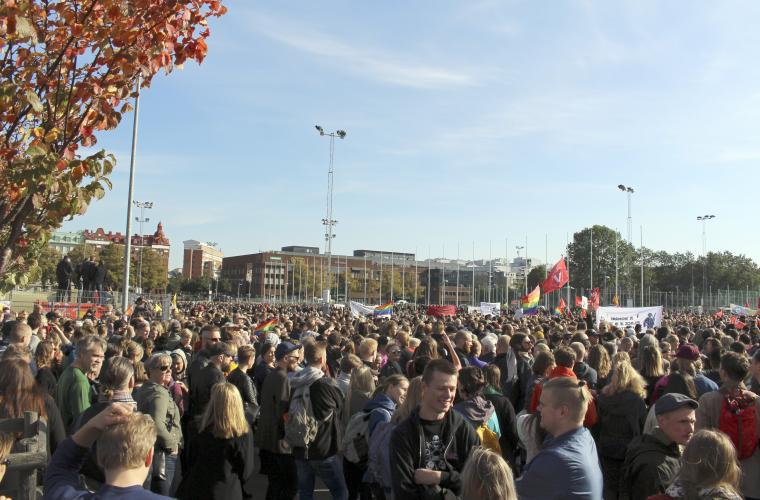 Energin från 30 september då Göteborg och Sverige gick man ur huse för att i tusental med sina kroppar manifestera att nazismen inte har i det här samhället att göra är fortfarande i färskt och starkt minne. Vi – folket – sa att detta är inte okej. Häromdagen var det dags igen. Från förvaret i Kållered utvisades tio stycken, primärt ensamkommande, till Kabul. En stad i ett land Amnesty avråder ifrån och där många av de unga männen inte varit sedan de var små, om alls, och där de inte känner en själ. Sverige skickar unga människor som redan bor här, redan går i skolan till vad som inte osannolikt blir deras död utan att blinka. Ett par hundra personer protesterade i regn och blåst högljutt utanför förvaret när människor med sina kroppar sa att här är vår gräns – detta är inte okej.
