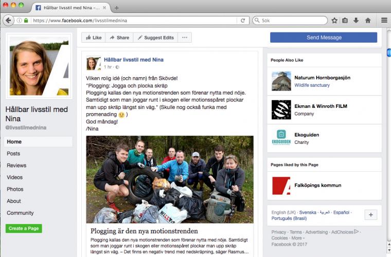 Genom den personliga Facebooksidan Hållbar livsstil med Nina har Falköpings kommun lyckats nå ut och få en dialog med invånarna kring hållbarhet.