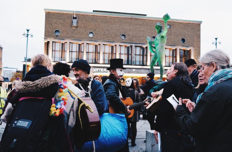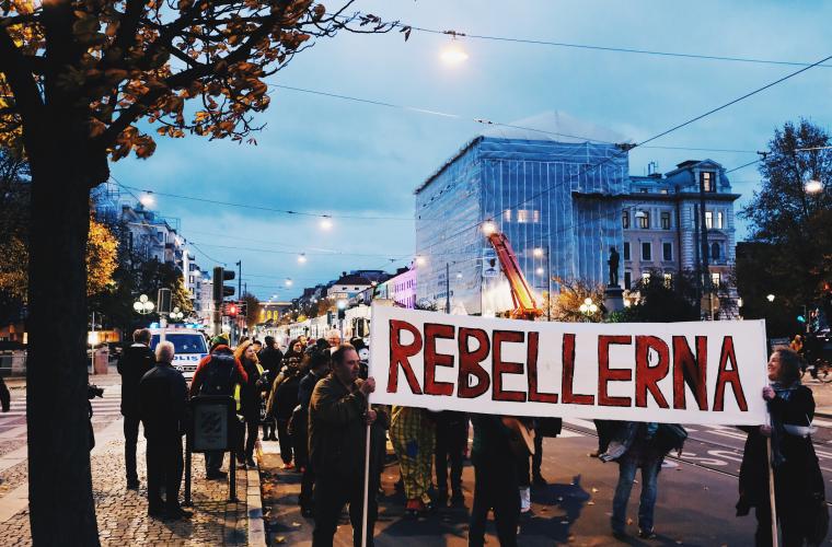 Ungefär 75 personer samlades på Götaplatsen för att tåga ner mot Gustav Adolfs torg i demonstrationen “Rebellerna – Från osynlig till synlig”. Initiativet kommer från personer som lever i hemlöshet, inom ramen för projektet Rättvis teater, där personer som lever i social utsatthet arbetar med forumteater.