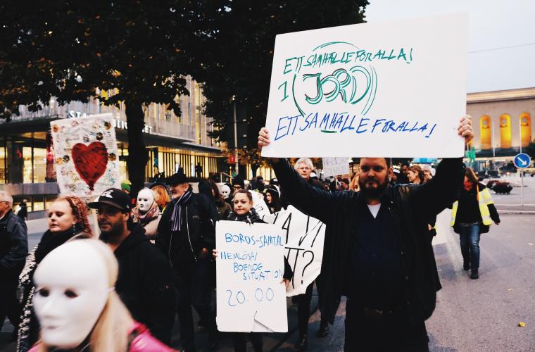 – Det var ett gäng olika personer, både hemlösa och andra, som deltog. Det viktigaste med demonstrationen är att visa att personer som av olika skäl har hamnat i hemlöshet är kompetenta personer som själva har förmåga att se vad man behöver, säger Annika Ström Öberg, boendechef och hemlöshetsstrateg Göteborgs Räddningsmission, och demonstrationens kontaktperson.