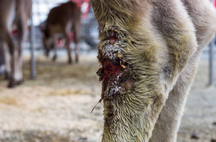 Kamelen hade ett öppet sår på benet. Cirkus Maximums agerande i fallet bryter mot djurskyddslagen, enligt länsstyrelsen i Hallands län.