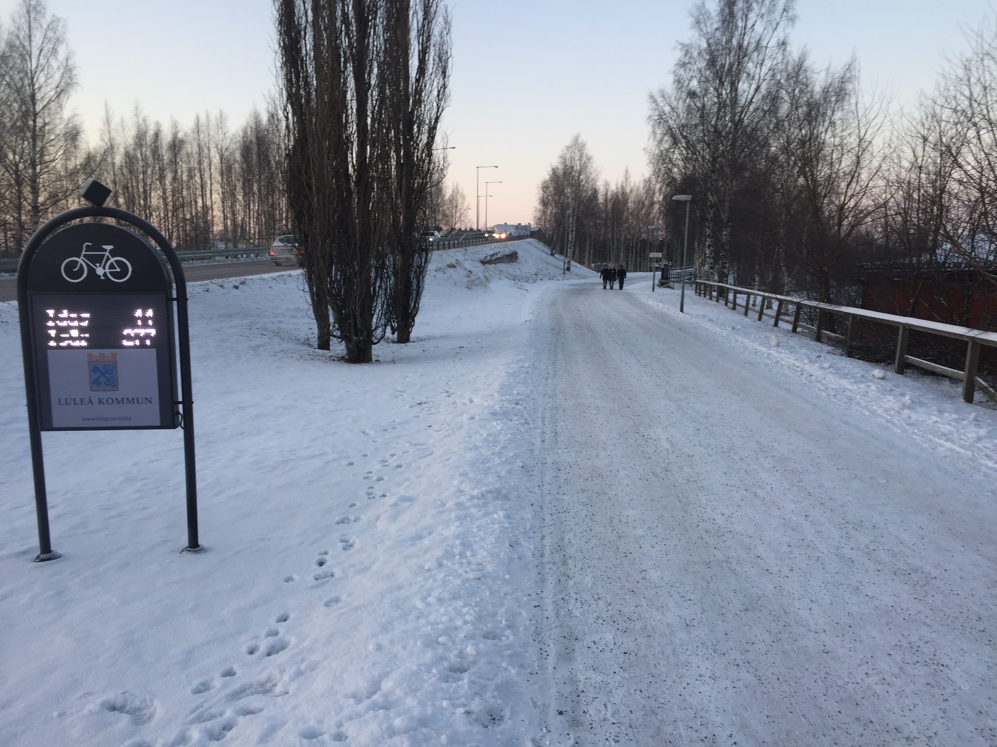 Observera väglaget. Jag rekommenderar att du ser dig om efter andra vägar om det är dåligt väglag. Villagator är alltid sämst snöröjda. Cykelbanor brukar vara lite bättre och bussbanor brukar vara bäst.