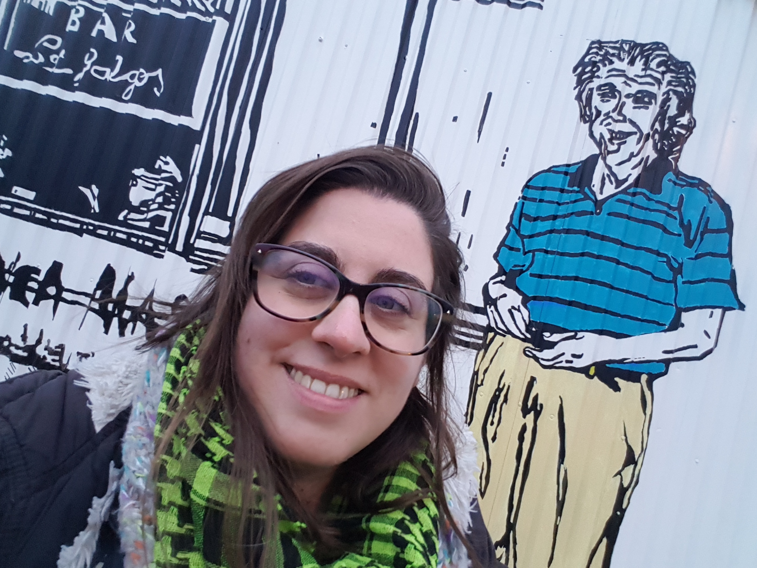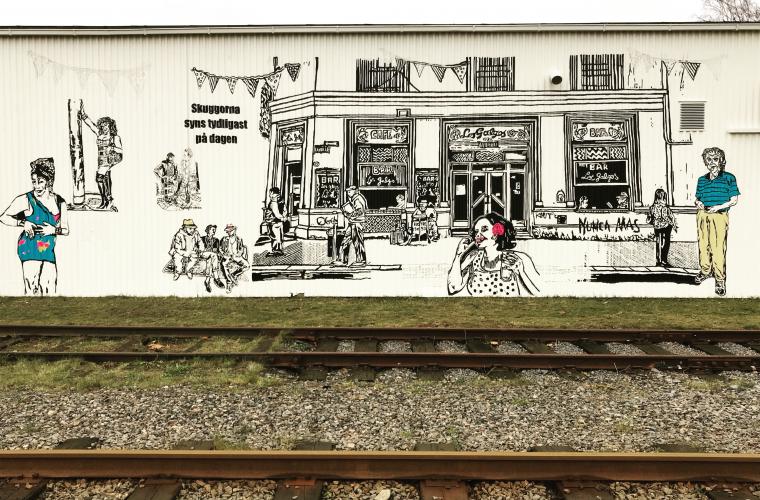 Med en pensel i ena handen rör sig Ana Carolina Fleming över byggnadsställningen utmed väggen på Veddige tågstation i Varbergs kommun. De senaste veckorna har tågresenärerna kunnat se en muralmålning växa fram på fasaden. Målningen föreställer ett typiskt kafé i den argentinska huvudstaden Buenos Aires som Ana Carolina lämnade för Varberg för sex år sedan. Hennes pappa och flera vänner från både Sverige och Argentina finns med i verket.